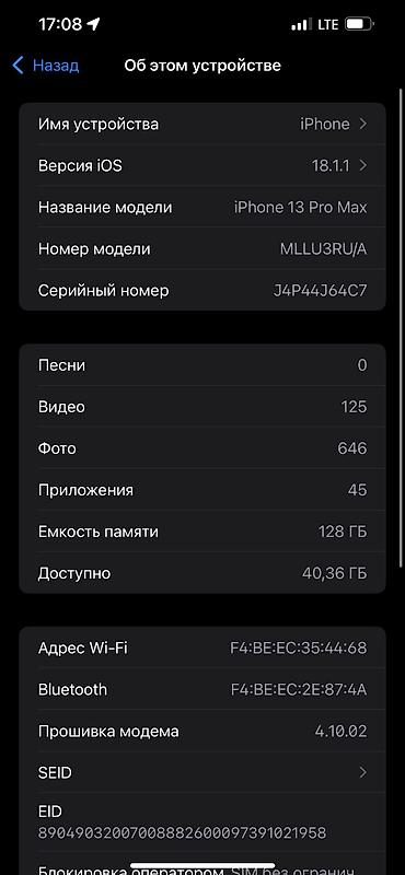 iPhone 13 Pro Max 128GB Sierra Blue АКБ 92%, заменённый на оригинал, без ошибок, держит отлично Официально зарегистрирован в ГСИ! Состояние идеальное, никаких сколов, вмятин, царапин или потёртост...