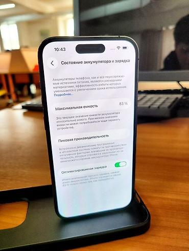- Состояние аккумулятора: максимальная емкость 83%, пиковая производительность поддерживается, включена «Оптимизированная зарядка»