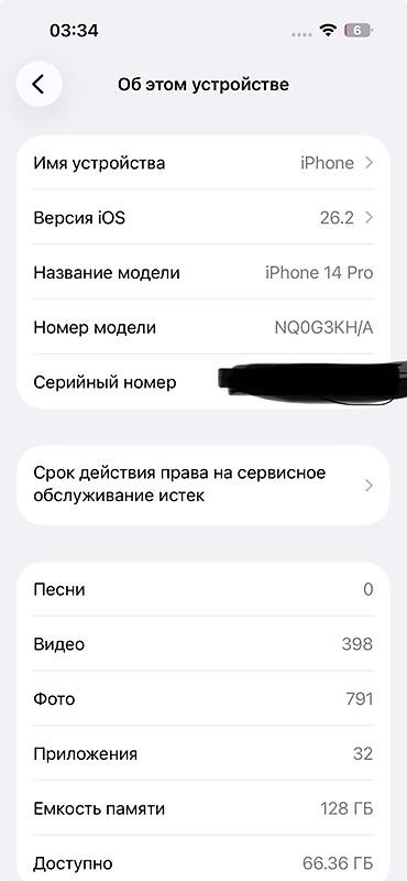 - Модель: iPhone 14 Pro (номер модели NQ0G3KH/A)