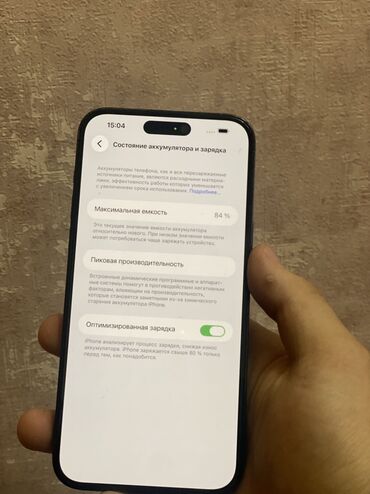 - Батарея: максимальная емкость батареи в настройках — 84% (скрин на фото), включена оптимизированная зарядка.