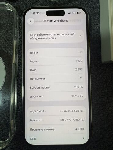 - Память: 256 ГБ (доступно на скриншоте около 147 ГБ)