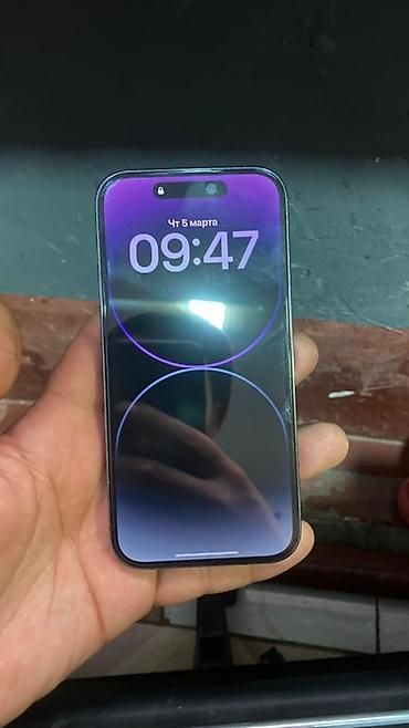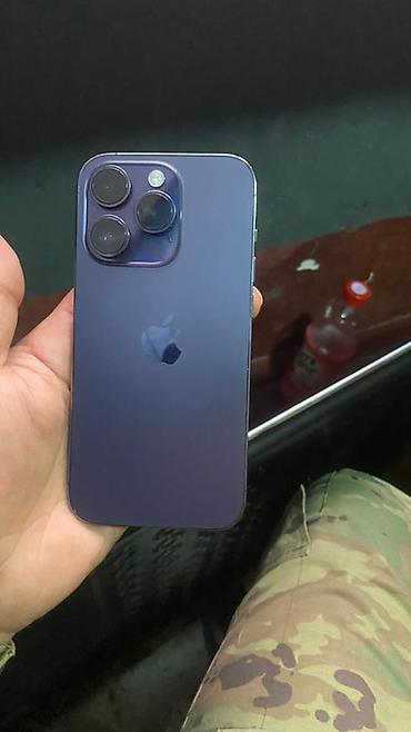 Смартфон Apple iPhone (серия с «Dynamic Island») в цвете Deep Purple.