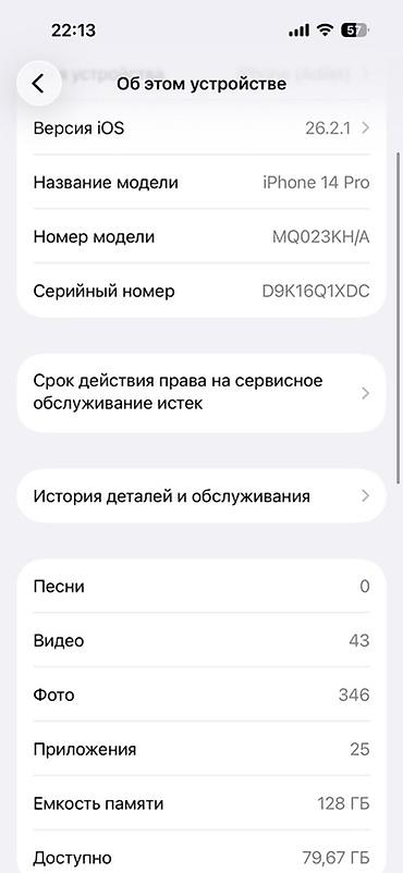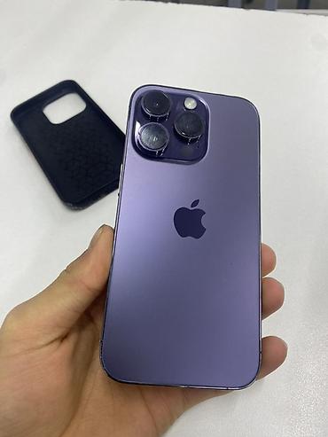 IPhone 14 Pro, Б/у, 128 ГБ, Deep Purple, Чехол, 80 %