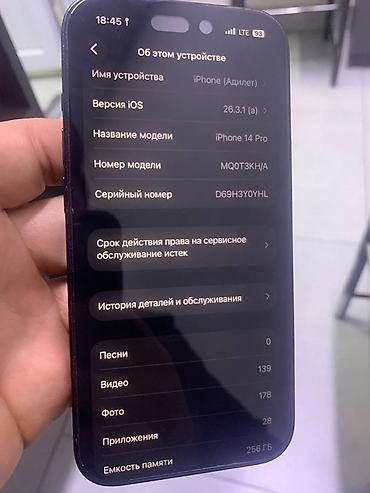 IPhone 14 Pro Max, 256 ГБ, цвет Deep Purple Характеристики и детали с устройства: - Модель: iPhone 14 Pro Max (MQCE3RU/A), серийный номер на скрине - Память: 256 ГБ (доступно ~239,5 ГБ) - iOS: вер...