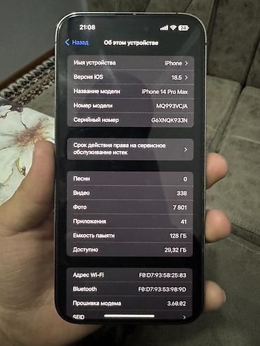 Продаю iPhone 14 Pro MAX Цвет Deep Purple Память:256 гб АКБ: 81% Состояние хорошее Менялась нижняя линза, а так всё работает Всё имеется в комплекте: коробка, зарядка Цена: 43000 сом, реальным клие...