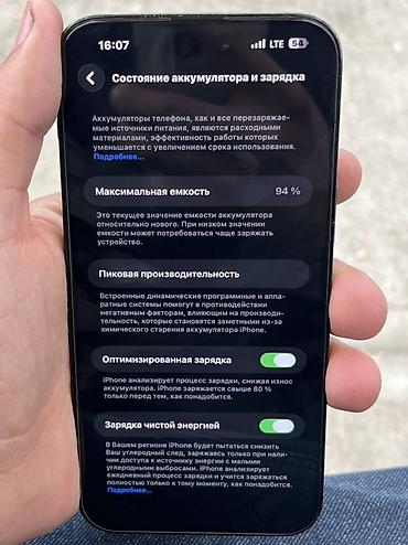 - Аккумулятор: максимальная ёмкость 94%, пикова́я производительность в норме