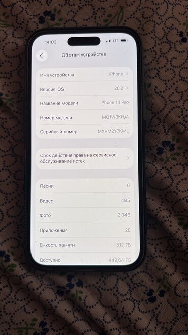 IPhone 14 Pro, Б/у, 512 ГБ, Белый, Зарядное устройство, Чехол, 88 %