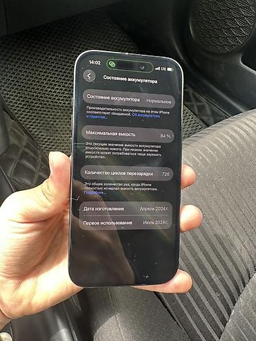 - Аккумулятор: максимальная емкость 84%, количество циклов зарядки 726