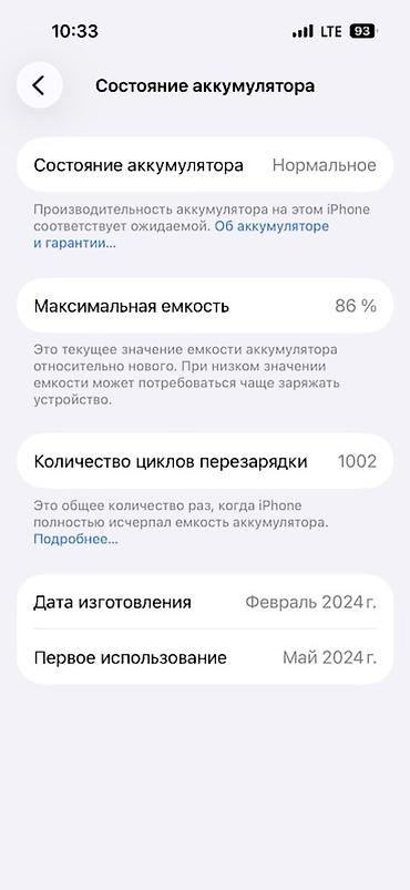 Батарея (по разделу «Состояние аккумулятора»):