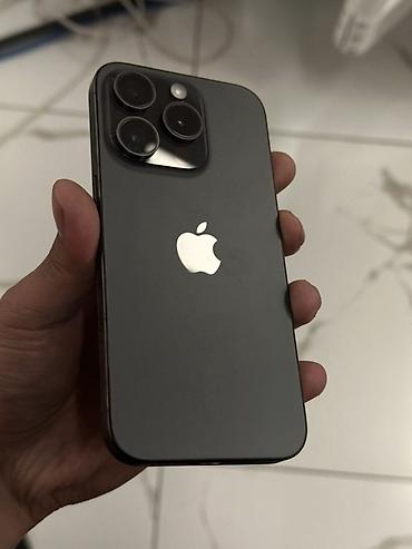 IPhone 15 Pro, титан, цвет чёрный. Экран 6.1" Super Retina XDR с Dynamic Island. Тройная основная камера с LiDAR, ночным режимом и ProRAW/ProRes, фронтальная TrueDepth. На борту iOS 16.1 (в разделе указано 26.1 как сборка), модель MTQR3LL/A. Серийный номер виден на скриншоте. Кнопка Action, Face ID, поддержка 5G/LTE, Wi‑Fi 6E, Bluetooth, NFC, GPS. Порт USB‑C.