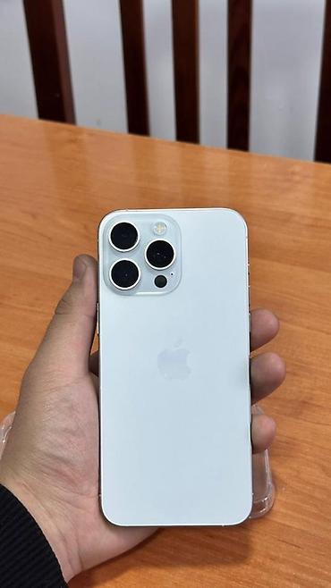 IPhone 15 Pro, цвет светлый (вероятно White/Titanium). Комплектация на фото: прозрачный чехол.