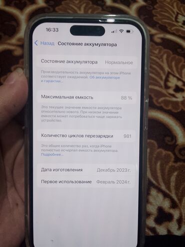 Айфон 15 про белый сатылат 128 Гб АКБ 88℅ баары жакшы иштейт оригинал зарядкасын кошуп берем 55 мин