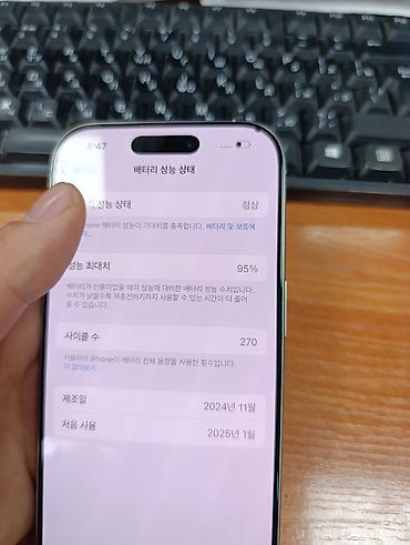 - Аккумулятор: максимальная ёмкость 95%, количество циклов — 270