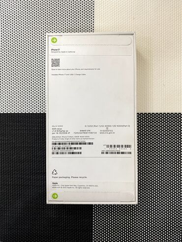 IPhone 17, Новый, 256 ГБ, Черный, Коробка, 100 %