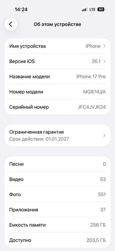IPhone 17 Pro, 256 ГБ, синий цвет бардыгы иштей бир ай болду алганыма Г.Ош коробка кабель чехол в комплекте e-sim