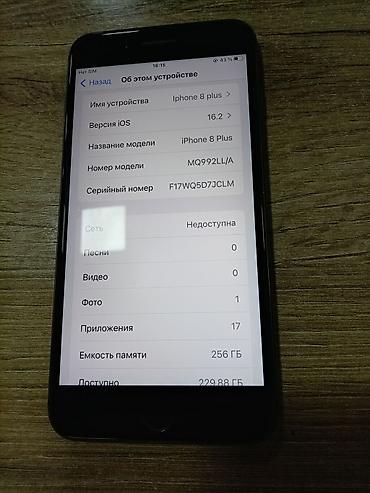 IPhone 8 Plus, 256 ГБ, Черный, 100 %