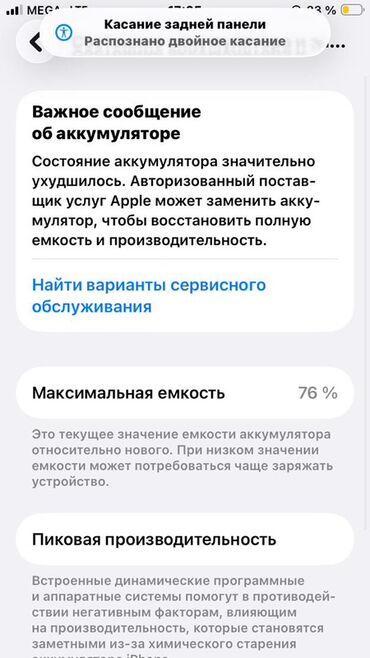 - Система сообщает о заметном ухудшении состояния аккумулятора и рекомендует замену у авторизованного поставщика для восстановления полной емкости и производительности.