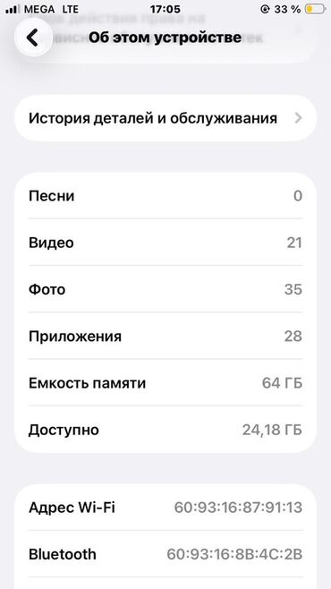 - Память: 64 ГБ, доступно 24,18 ГБ.