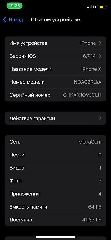 Iphone X 64 всё работает на экране царапин нет по корпусу пару царапин имеется телефон в хорошем состоянии находится в Бишкеке Единственный минус акб не показывает - Недавно менял