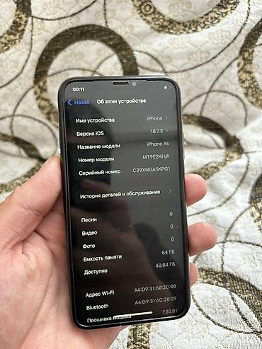 IPhone XS, 64 ГБ, модель MTAG2LL/A Характеристики и особенности: - Память: 64 ГБ (доступно ~45,78 ГБ на скриншоте) - Версия iOS: 18.7.3 - Экран: OLED Super Retina, Face ID - Камера: двойная основ...
