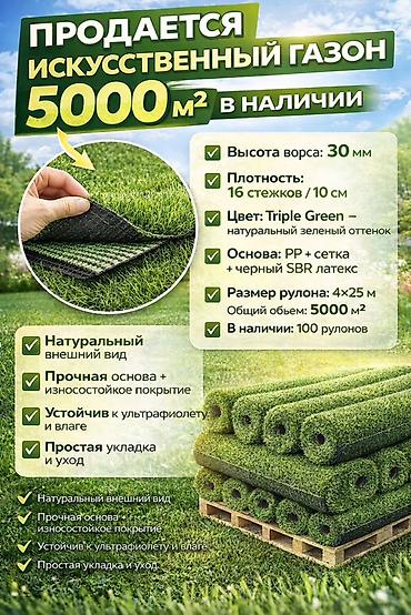 Искусственный газон для спортивных площадок и ландшафта - Покрытие в рулонах, предназначено для футбольных полей, мини-футбола, многофункциональных площадок, детских зон и придомового озеленения. ...