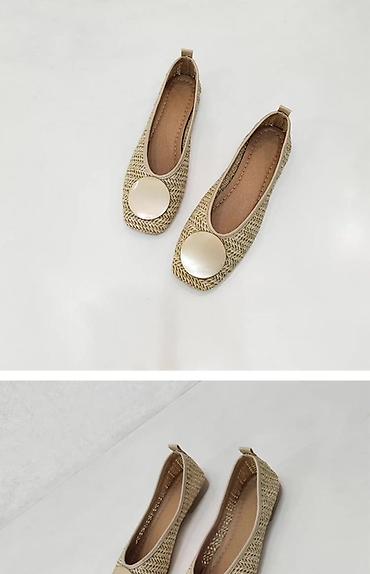 Женские балетки из плетёного материала (натуральный), бежевый цвет.