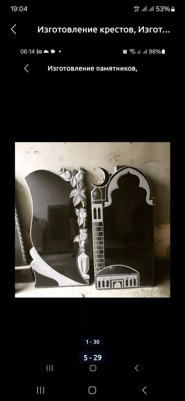 Изготовление памятников и надгробных табличек. - Материалы: гранит, мрамор, дерево (резьба и тонировка), металл (ковка, стойки). - Варианты оформления: мусульманские и православные мотивы (полумес...