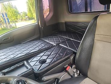 - Пассажирская часть переоборудована в спальное место: модульные мягкие панели/матрасы с ромбовидной прострочкой, подлокотники и крышки-боксы, отверстия-подстаканники.