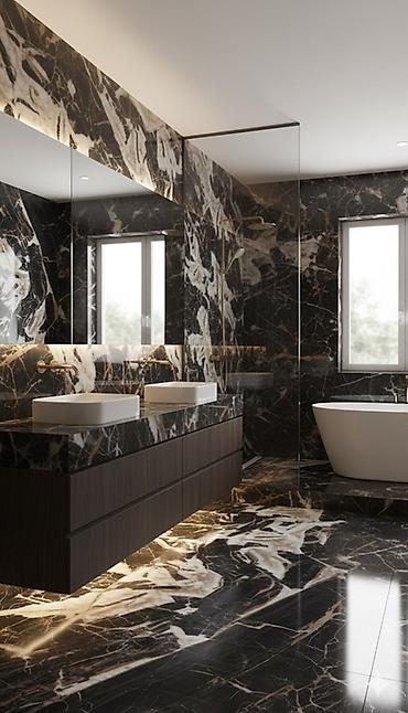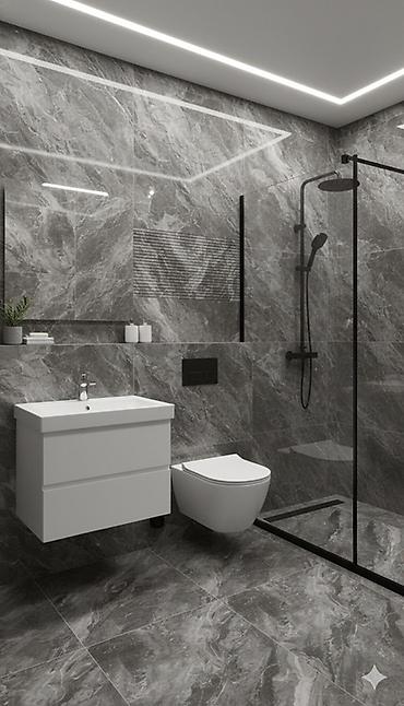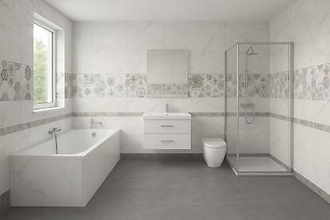 Керамическая плитка и керамогранит для ванных комнат — коллекции с мраморной текстурой и современными форматами.