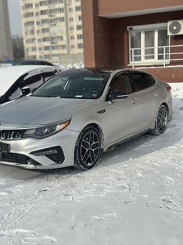 Kia Optima, серебристый седан с черной крышей, спортивный обвес.