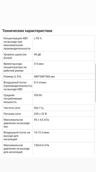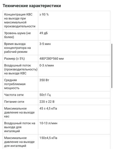 - Концентрация кислорода на выходе ≥ 93% при максимальной производительности