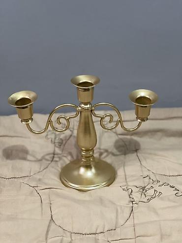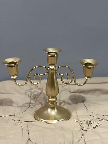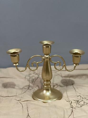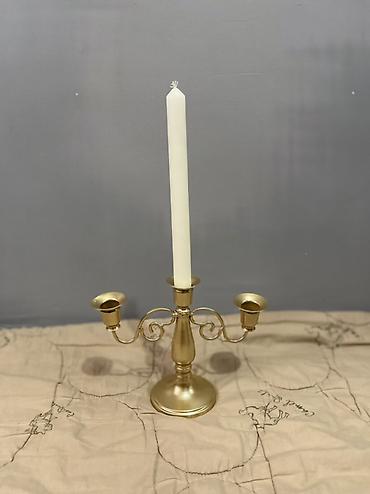 Классический трёхрожковый подсвечник - Материал: металл с золотистым