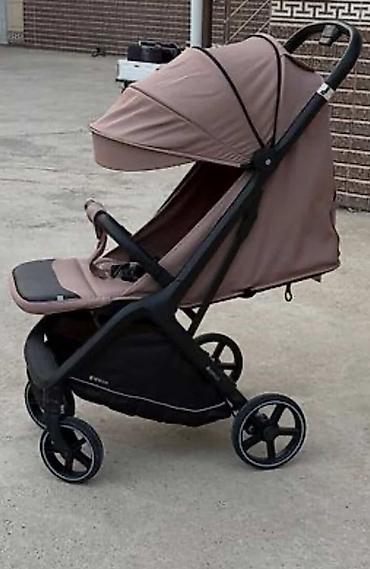 Прогулочная коляска-трость (компактная) в коричневом цвете. Основные особенности: - Легкая складная рама, складывается одной рукой до компактного размера. - Капюшон с дополнительной секцией на мол...