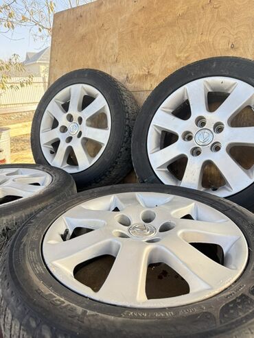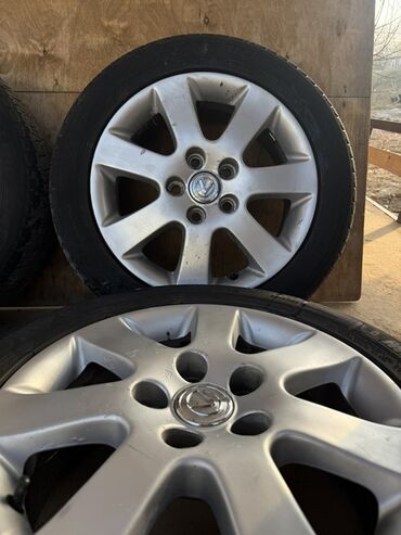 Комплект из 4 шт. оригинальных легкосплавных дисков на авто Тойота виш и Субару Легаси шинами. Характеристики: - Диски: 5-спицевые, фирменные колпачки с логотипом Тойота 5 крепёжных отверстий. - П...