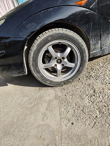 - Диски: легкосплавные, 5‑спицевые, серебристые, посадочный диаметр R15, крепеж под 4 болта (видимый центральный вылет с углублением под декоративную заглушку)