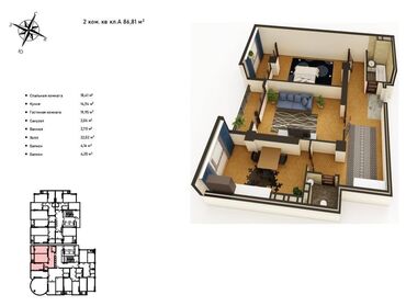 2 комнаты, 91 м², Элитка, 11 этаж, Дизайнерский ремонт