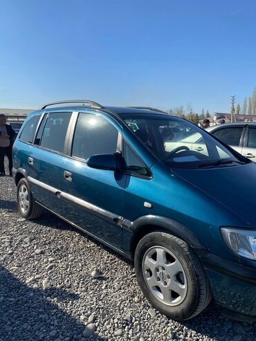 КыргызстанOpel Zafira A — компактвэн в бирюзовом цвете, 5 дверей,. Просторный салон с высоким потолком и панорамным обзором, черная тканевая обивка, передняя панель в классическом стиле Opel.