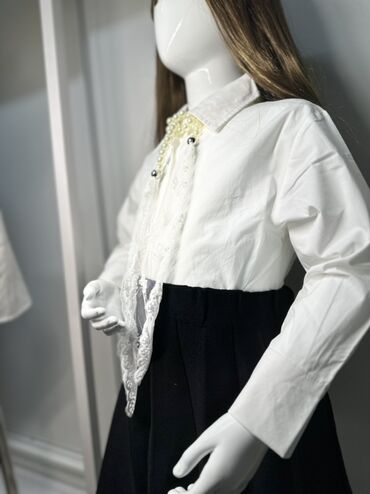 БелыйБлузка выполнена в строгом стиле, имеет воротник и пуговицы по всей длине спереди. аксессуарами для создания разных образов.