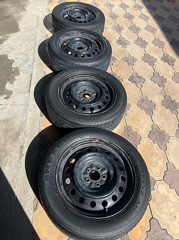 Комплект из четырех автомобильных шин с штамповаными дисками 205 / 55 R 16. Тойота Авенсис 2008 года 2 поколение. Разболтовка 5 / 100