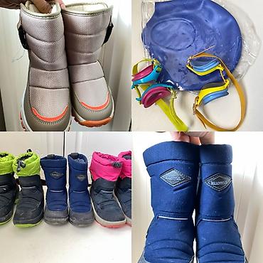 - Зимние сапоги/дутики на тёплой подкладке: несколько пар в синих, серых, розовых и салатовых оттенках; есть пара Kuoma.
