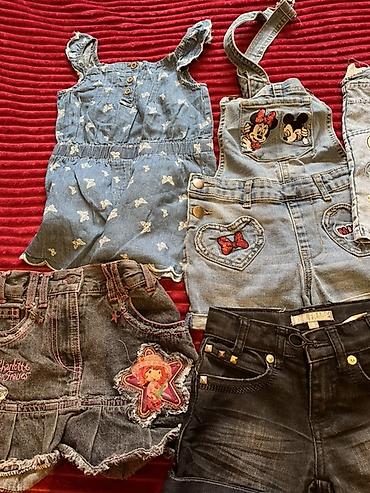 Подборка детской одежды для девочки: джинсовые и хлопковые модели разных фасонов и оттенков. В наборе: - Джинсовые шорты: классические, с отворотами, с рюшами и декоративными потертостями; есть ва...