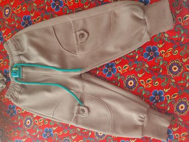 Детские брюки теплые /джоггеры - Размер: 110 (ярлык на изделии) - Цвет: бежевый с контрастной черной резинкой на поясе - Материал: мягкий трикотаж/футер на ощупь, плотный и теплый - Посадка: свобо...