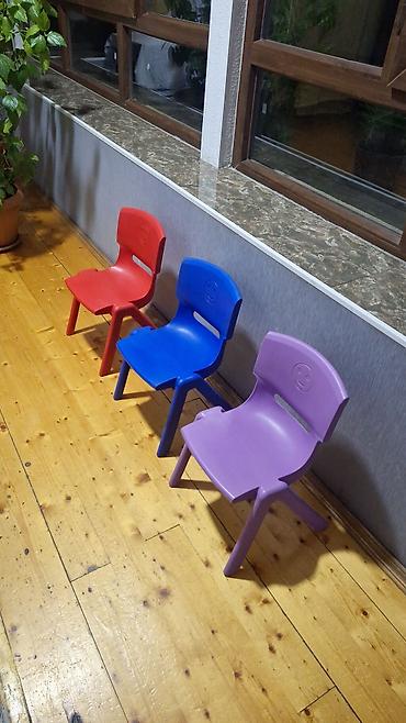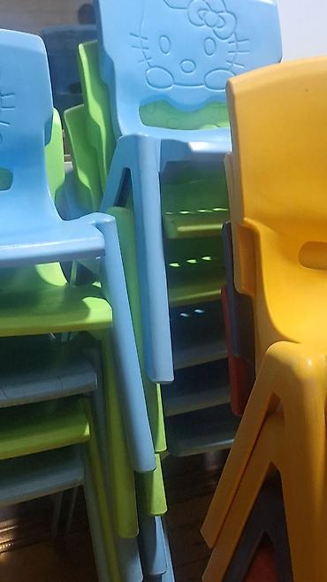 - Пластиковые стульчики для детей: яркие цвета (красный, синий, фиолетовый, жёлтый, зелёный, голубой). На спинке — фигурный рисунок/эмодзи, вентиляционные прорези. Устойчивая посадка с низким центром тяжести, закруглённые края. Легко моются, не боятся влаги. Стопируются для компактного хранения.