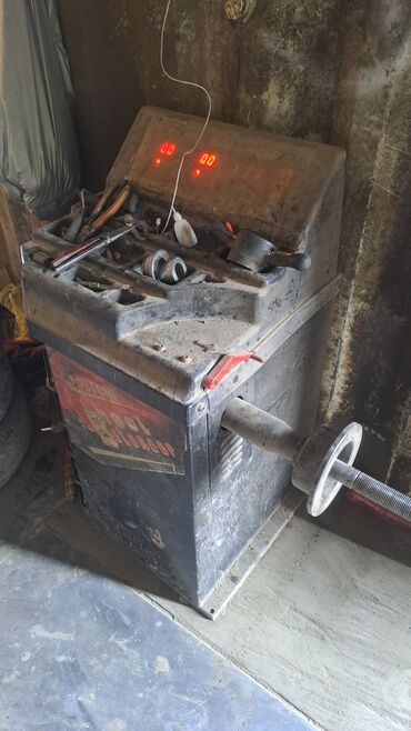 - Балансировочный станок с электронной индикацией (двухстрочный дисплей с LED-индикаторами). Узел вал-шпиндель с прижимной шайбой и гайкой, полка для грузиков и инструментов.