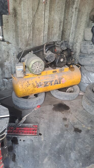 - Воздушный компрессор Oztai Air Compressor (желтый ресивер). Двухцилиндровая головка, электродвигатель с ременной передачей, манометр и арматура на ресивере.