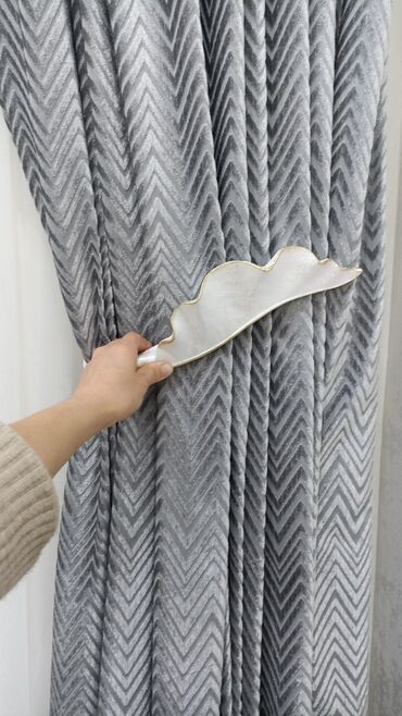 - Подхваты: декоративные, в форме листьев, белые с золотистой патиной и трещинкой-кракле; в комплекте пара. Позволяют формировать аккуратные занавесы и добавляют элегантный акцент.