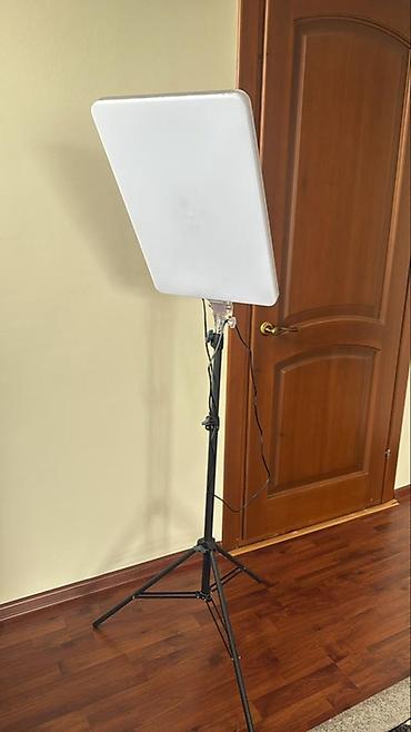 - Плоская прямоугольная LED‑панель на отдельном штативе. Мягкий рассеянный свет, поворотный механизм для изменения угла, питание от сети.