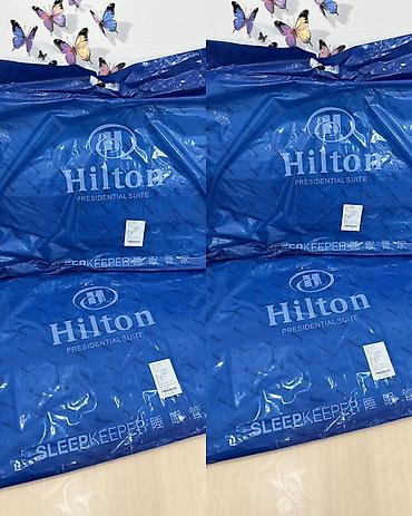 - Подушки Hilton Presidential Suite (в фирменных пакетах SLEEPKEEPER) — крупный размер, объемные, с равномерным наполнением для поддержки головы и шеи. Поставляются в герметичных синих пакетах с ярлыками.