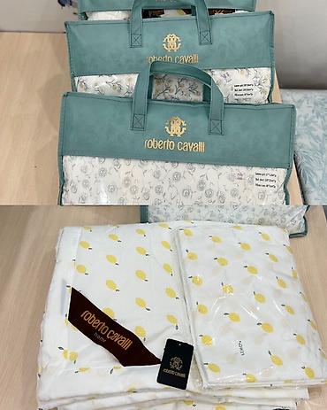 - Постельное бельё Roberto Cavalli Home — комплект в фирменной сумке с ручками; ткань с принтом (лимоны) и флористическими мотивами, аккуратная отстрочка, бирки и лейблы бренда.