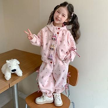 Детский костюм для девочки, 2 предмета: худи с капюшоном и брюки.